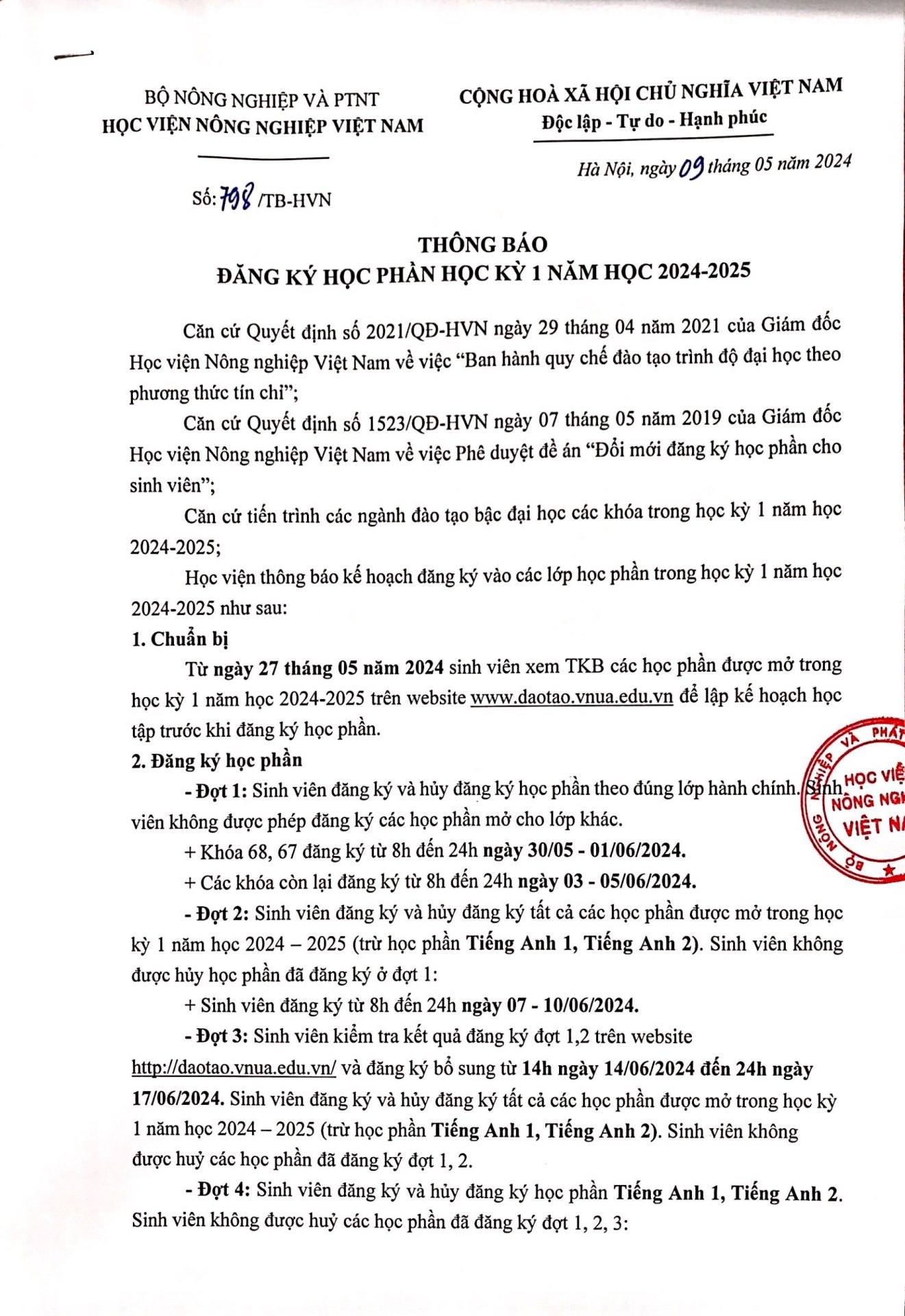 Đào tạo, Thông báo Thông báo đăng ký học phần học kỳ 1 năm học 2024-2025 Ngày đăng: 15/05/2024 by btvcodien Tin cùng thể loại Thông báo tuyển dụng Khảo sát tình hình việc làm của sinh viên tốt nghiệp năm 2024 Thông báo tổ chức Lễ bế giảng và trao bằng tốt nghiệp, bậc đào tạo Đại học, Hệ đào tạo chính quy đợt 3 năm 2025 Thông báo v/v mở lớp đặc biệt Học kỳ 1 năm học 2025-2026 Điều kiện để trở thành nghiên cứu sinh ngành Kỹ thuật cơ khí của khoa Cơ – Điện,Học viện Nông nghiệp Việt Nam