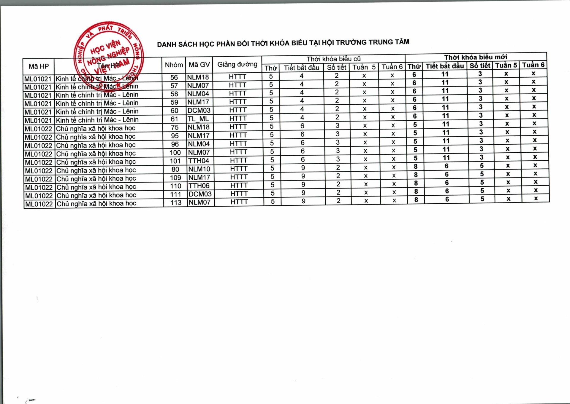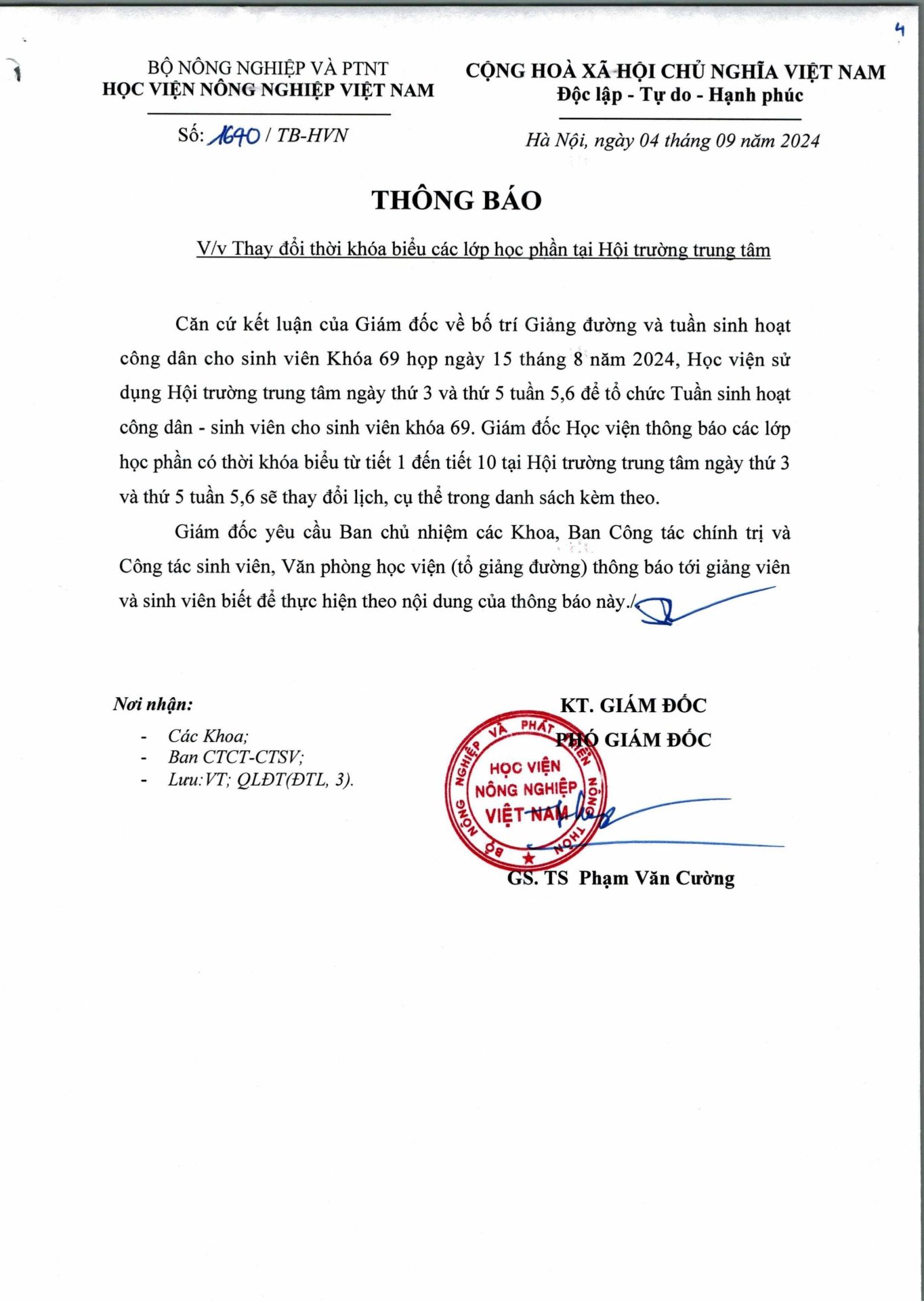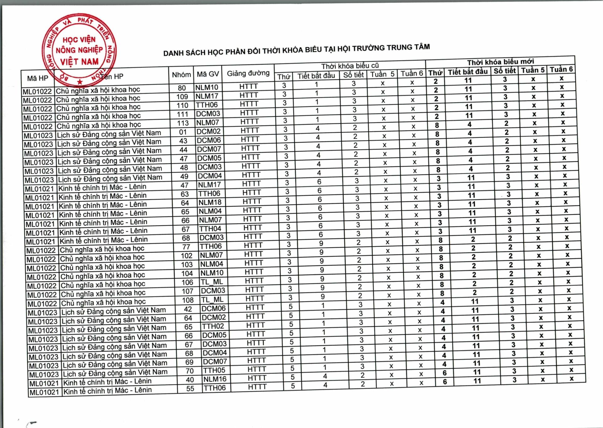 Đào tạo, Thông báo, Tin sinh viên Thông báo V/v Thay đổi thời khóa biểu các lớp học phần tại Hội trường trung tâm Ngày đăng: 06/09/202406/09/2024 by btvcodien Tin cùng thể loại Thông báo tuyển dụng Khảo sát tình hình việc làm của sinh viên tốt nghiệp năm 2024 Thông báo tổ chức Lễ bế giảng và trao bằng tốt nghiệp, bậc đào tạo Đại học, Hệ đào tạo chính quy đợt 3 năm 2025 Thông báo v/v mở lớp đặc biệt Học kỳ 1 năm học 2025-2026 Điều kiện để trở thành nghiên cứu sinh ngành Kỹ thuật cơ khí của khoa Cơ – Điện,Học viện Nông nghiệp Việt Nam