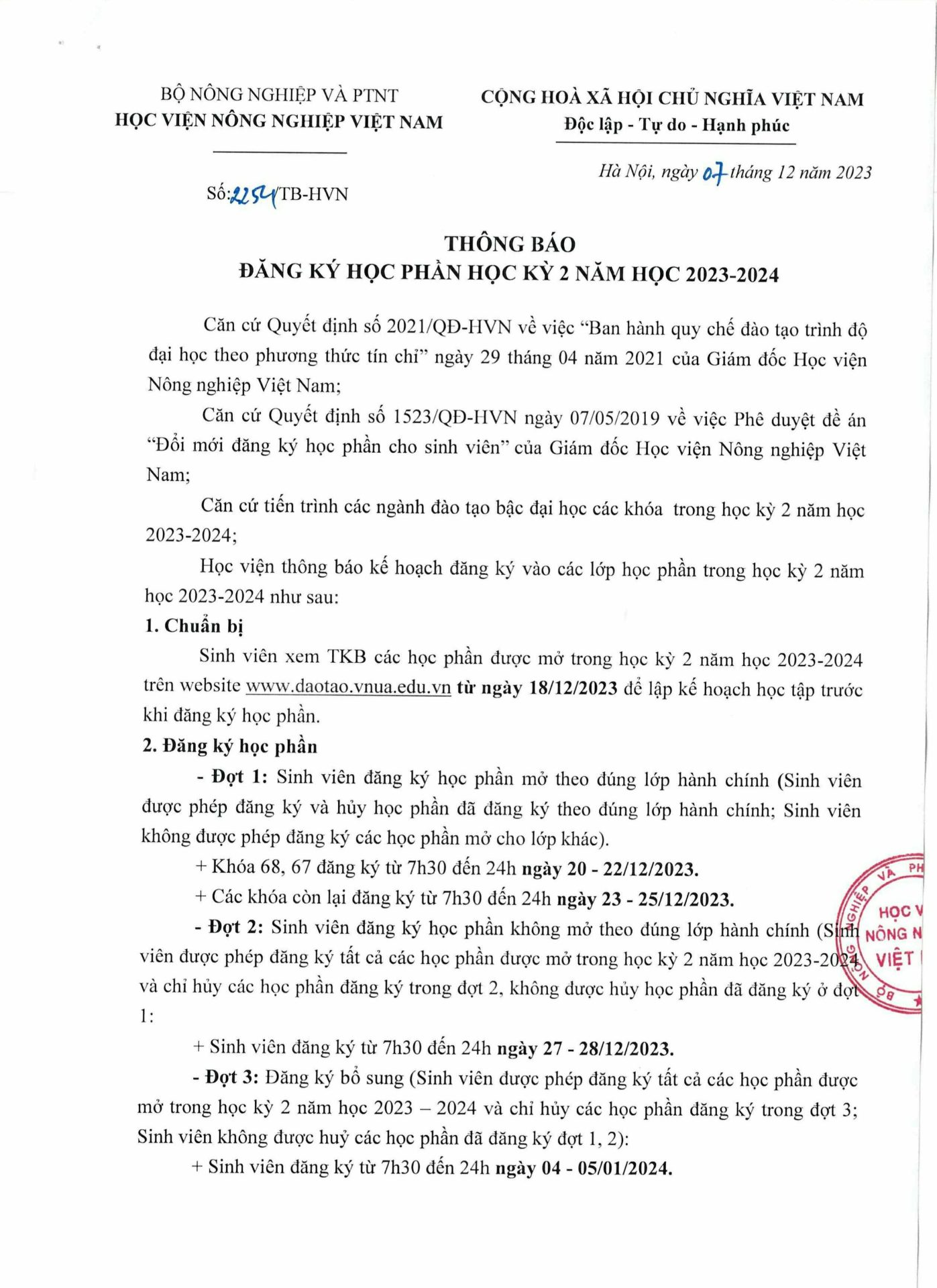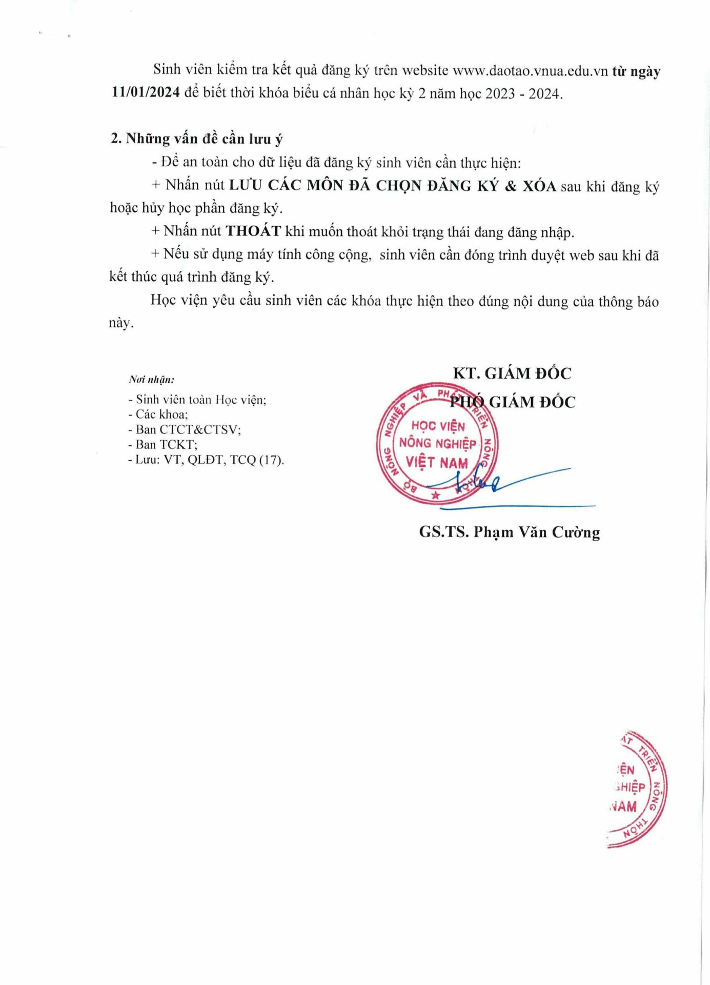 Thông báo, Tin sinh viên Thông báo V/v Đăng ký học phần học kỳ 2 năm học 2023-2024 Ngày đăng: 08/12/202308/12/2023 by btvcodien Hướng dẫn đăng ký học phần Tin cùng thể loại Thông báo tuyển dụng Khảo sát tình hình việc làm của sinh viên tốt nghiệp năm 2024 Thông báo tổ chức Lễ bế giảng và trao bằng tốt nghiệp, bậc đào tạo Đại học, Hệ đào tạo chính quy đợt 3 năm 2025 Thông báo v/v mở lớp đặc biệt Học kỳ 1 năm học 2025-2026 Điều kiện để trở thành nghiên cứu sinh ngành Kỹ thuật cơ khí của khoa Cơ – Điện,Học viện Nông nghiệp Việt Nam