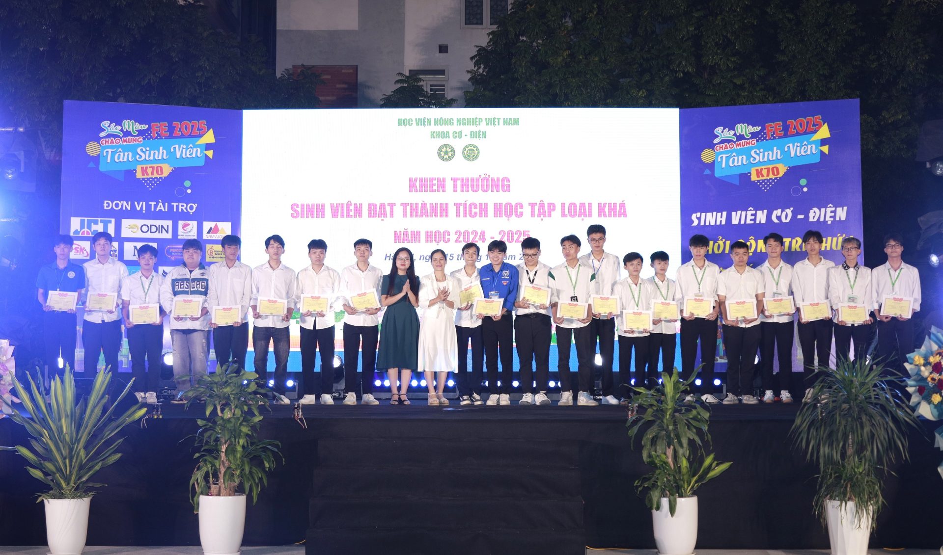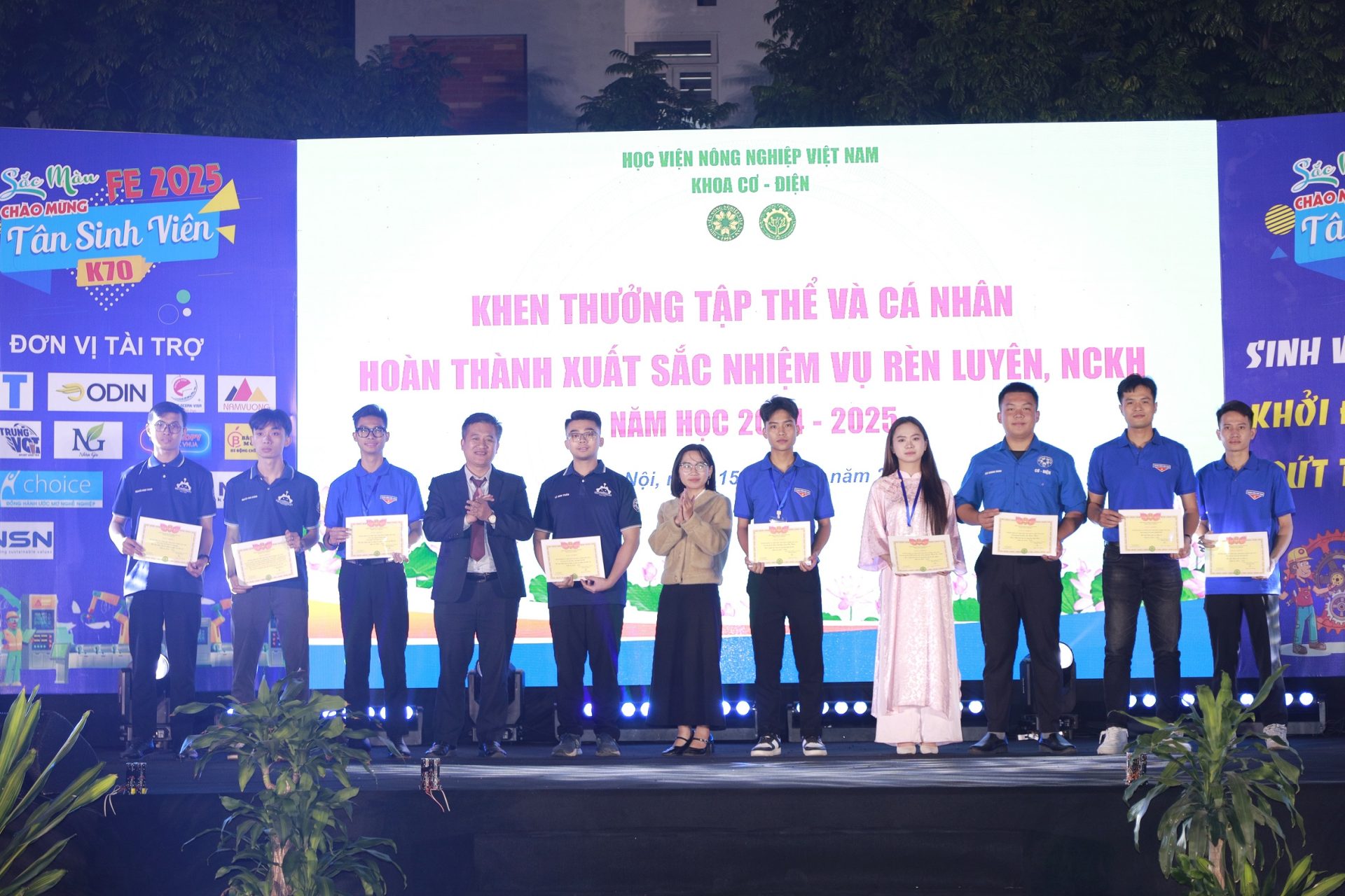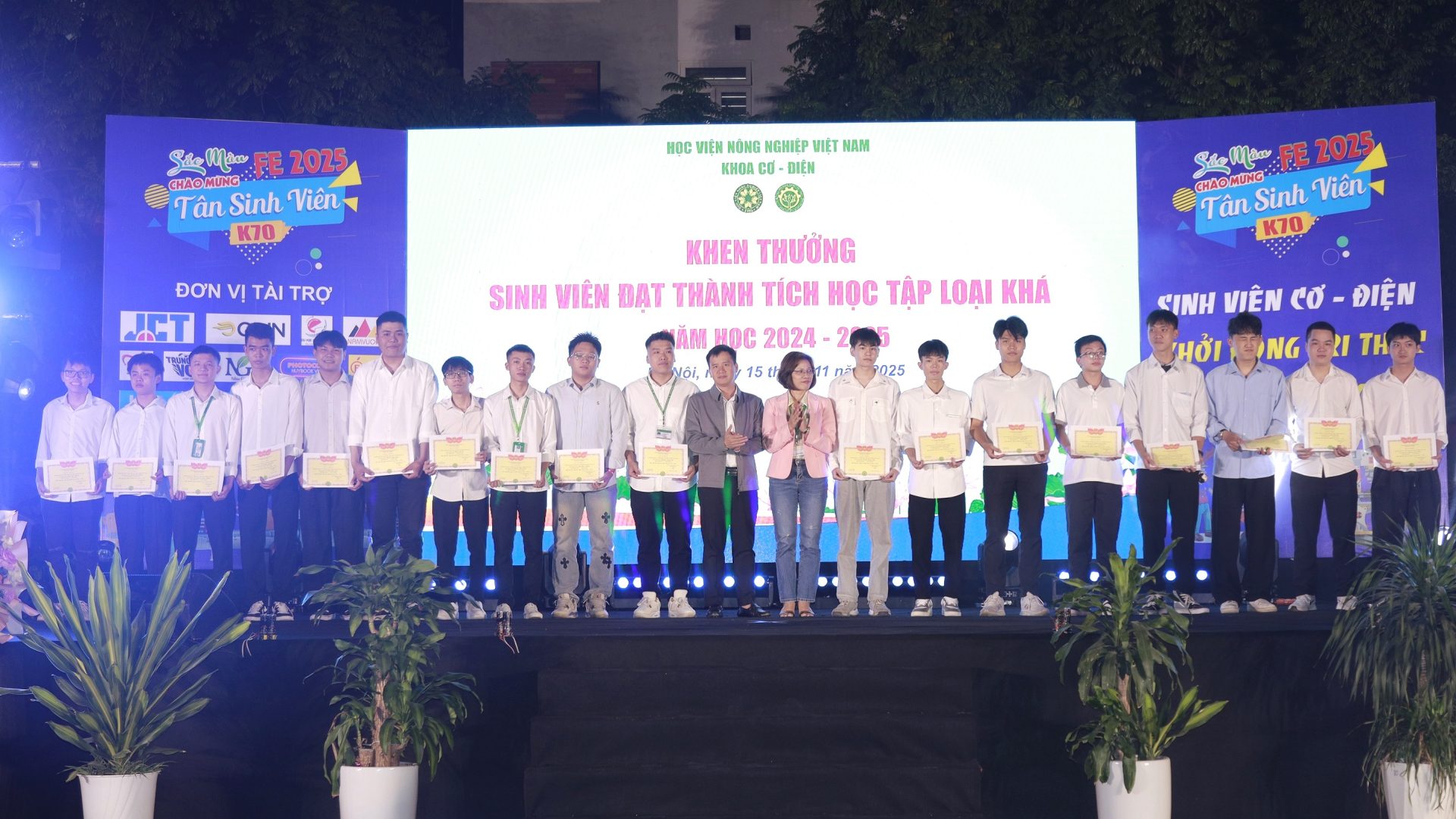 Lê tổng kết cũng là dịp để tuyên dương và khen thưởng những sinh viên có thành tích xuất sắc trong học tập, nghiên cứu khoa học và hoạt động phong trào. Các sinh viên được trao giấy khen và phần thưởng, ghi nhận sự cố gắng và nỗ lực trong suốt năm học 2024 – 2025 vừa qua gồm có: 02 tập thể lớp đạt danh hiệu tập thể xuất sắc, 02 sinh viên xuất sắc, 13 SV giỏi, 105 sinh viên khá (điểm TBNH hệ 10>7,0) và 01 sinh viên đạt giải Nhất kỳ thì Olympic toán học sinh viên toàn quốc lần thứ 31; 02 sinh viên và 01 nhóm sinh viên có thành tích tốt trong công tác NCKH; 22 cá nhân và 03 tập thể Đoàn – Hội đạt thành tích xuất sắc trong công tác Đoàn; CLB Rô bốt & Công nghệ đạt 01 giải Nhất và 01 giải Ba cuộc thi Khởi nghiệp nông nghiệp đổi mới sáng tạo 2024, đạt giải Ba cuộc thi APEC Innovation năm 2025…..