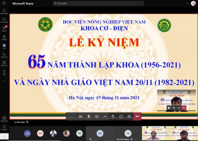 Nhân kỷ niệm 65 năm ngày thành lập Khoa, 39 năm ngày nhà giáo Việt Nam , sáng ngày 15/11, khoa Cơ – Điện, Học viện Nông nghiệp Việt Nam long trọng tổ chức chương trình kỷ niệm online chúc mừng các thầy cô, cán bộ Khoa đã cống hiến vì sự nghiệp giáo dục và......