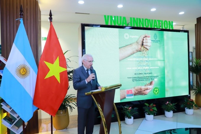 On the morning of December 18, 2025, at the Center of Excellence for Research and Innovation, Vietnam National University of Agriculture (VNUA) organized an exhibition of paintings showcasing technological achievements in the agricultural sector of the Argentine Republic. The event was held to introduce the country’s achievements, advancements, and export potential in agriculture.