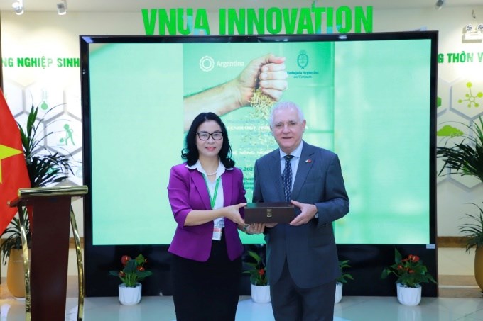 The exhibition at VNUA was expected to open up new opportunities for cooperation, thereby contributing to the promotion of a sustainable relationship between Vietnam and Argentina in the fields of agriculture, food, and education.