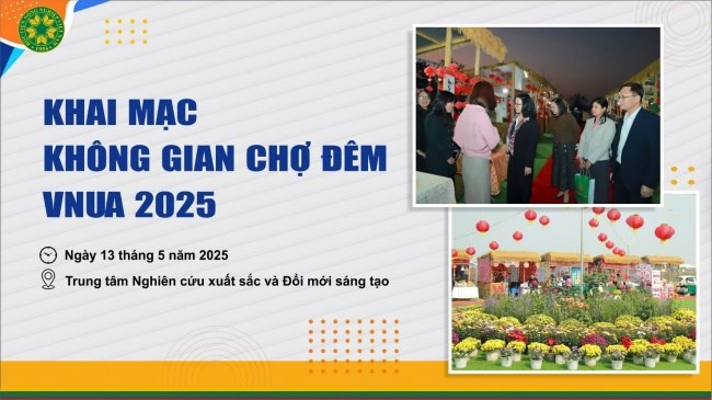 Lễ khai mạc Không gian chợ đêm VNUA diễn ra vào ngày 13/5/2025 tại Trung tâm Nghiên cứu xuất sắc và Đổi mới sáng tạo. Với các gian hàng trưng bày đặc sản vùng miền, sản phẩm thủ công mỹ nghệ, ẩm thực ăn uống, hoa, cây cảnh, Không gian chợ đêm mang đến bầu không khí lễ hội đa dạng, sôi động, thu hút đông đảo sinh viên, người dân địa phương và du khách đến trải nghiệm, giao lưu và khám phá.