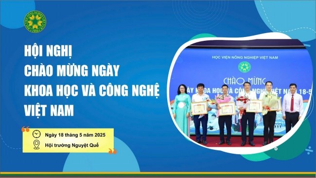 Hội nghị Khoa học và Công nghệ sẽ diễn ra vào ngày 18/5/2025 tại Hội trường Nguyệt Quế. Tại Hội nghị, Học viện Nông nghiệp Việt Nam sẽ tổng kết hoạt động khoa học và công nghệ năm 2024, đưa ra định hướng hoạt động khoa học công nghệ năm 2025, đồng thời, vinh danh các đơn vị/cá nhân có thành tích nổi bật trong hoạt động khoa học công nghệ năm 2024.