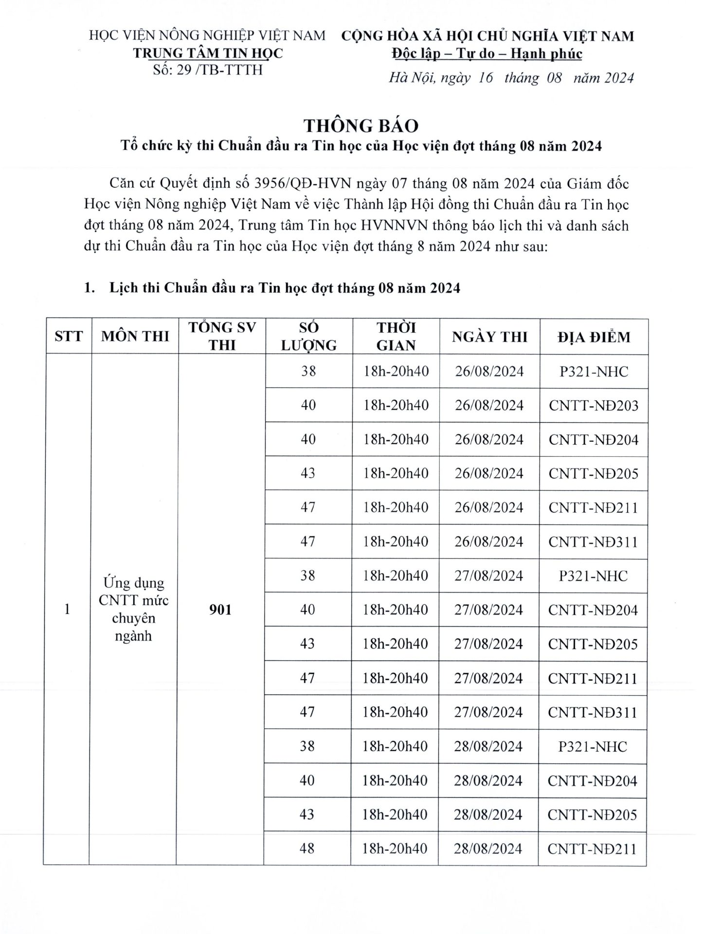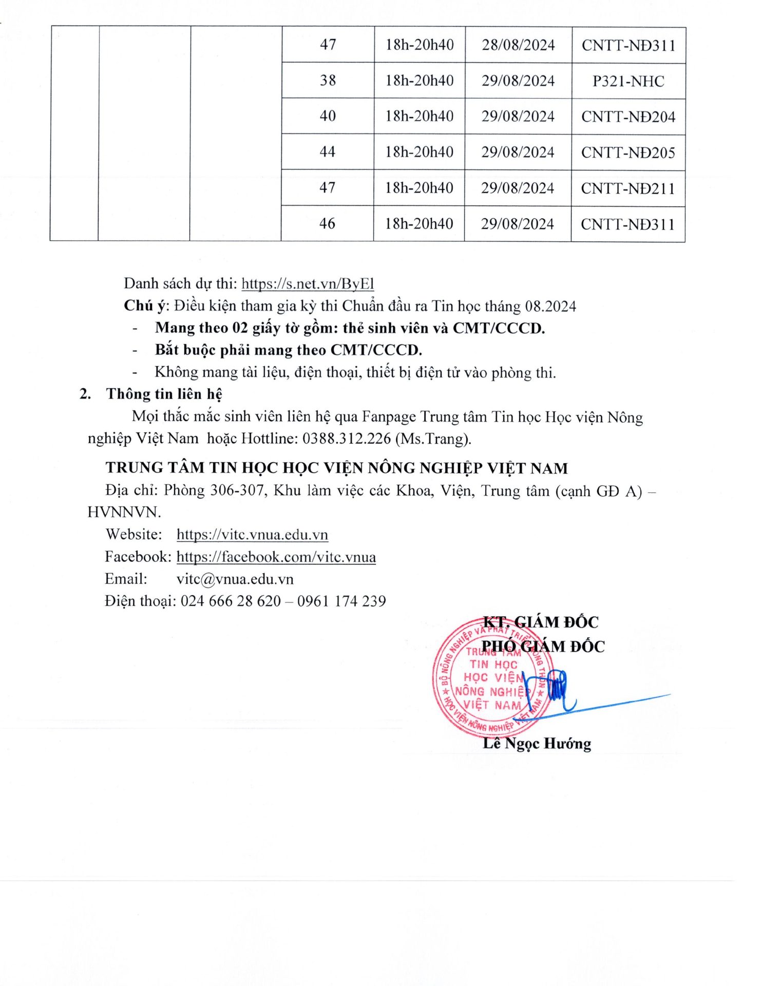 Đào tạo, Thông báo Thông báo V/v tổ chức kỳ thi Chuẩn đầu ra Tin học của Học viện đợt tháng 8 năm 2024 Ngày đăng: 22/08/202422/08/2024 by btvcodien Tin cùng thể loại Thông báo tổ chức Lễ bế giảng và trao bằng tốt nghiệp, bậc đào tạo Đại học, Hệ đào tạo chính quy đợt 3 năm 2025 Thông báo v/v mở lớp đặc biệt Học kỳ 1 năm học 2025-2026 Điều kiện để trở thành nghiên cứu sinh ngành Kỹ thuật cơ khí của khoa Cơ – Điện,Học viện Nông nghiệp Việt Nam Học viện Nông nghiệp Việt Nam – Điểm đến của nghiên cứu sinh ngành Kỹ thuật cơ khí Hướng dẫn thao tác cơ bản trên cổng thông tin đào tạo