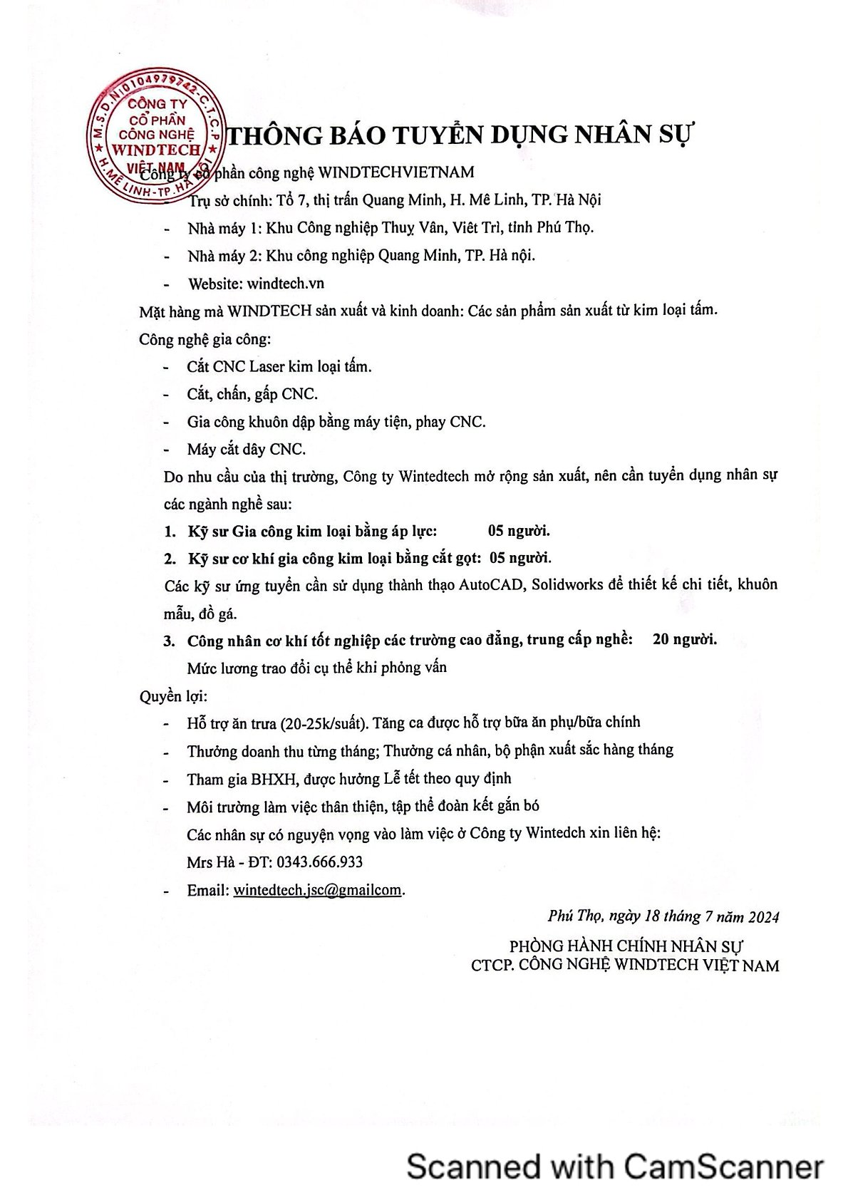 Thông báo, Thông tin việc làm Thông tin tuyển dụng của Công ty CP CN WINDTECH Việt Nam Ngày đăng: 19/07/2024 by btvcodien Tin cùng thể loại Thông báo tổ chức Lễ bế giảng và trao bằng tốt nghiệp, bậc đào tạo Đại học, Hệ đào tạo chính quy đợt 3 năm 2025 Thông báo v/v mở lớp đặc biệt Học kỳ 1 năm học 2025-2026 Điều kiện để trở thành nghiên cứu sinh ngành Kỹ thuật cơ khí của khoa Cơ – Điện,Học viện Nông nghiệp Việt Nam Hướng dẫn thao tác cơ bản trên cổng thông tin đào tạo Thông báo V/v thu tiền học phí học kì I, năm học 2025-2026 đối với SINH VIÊN