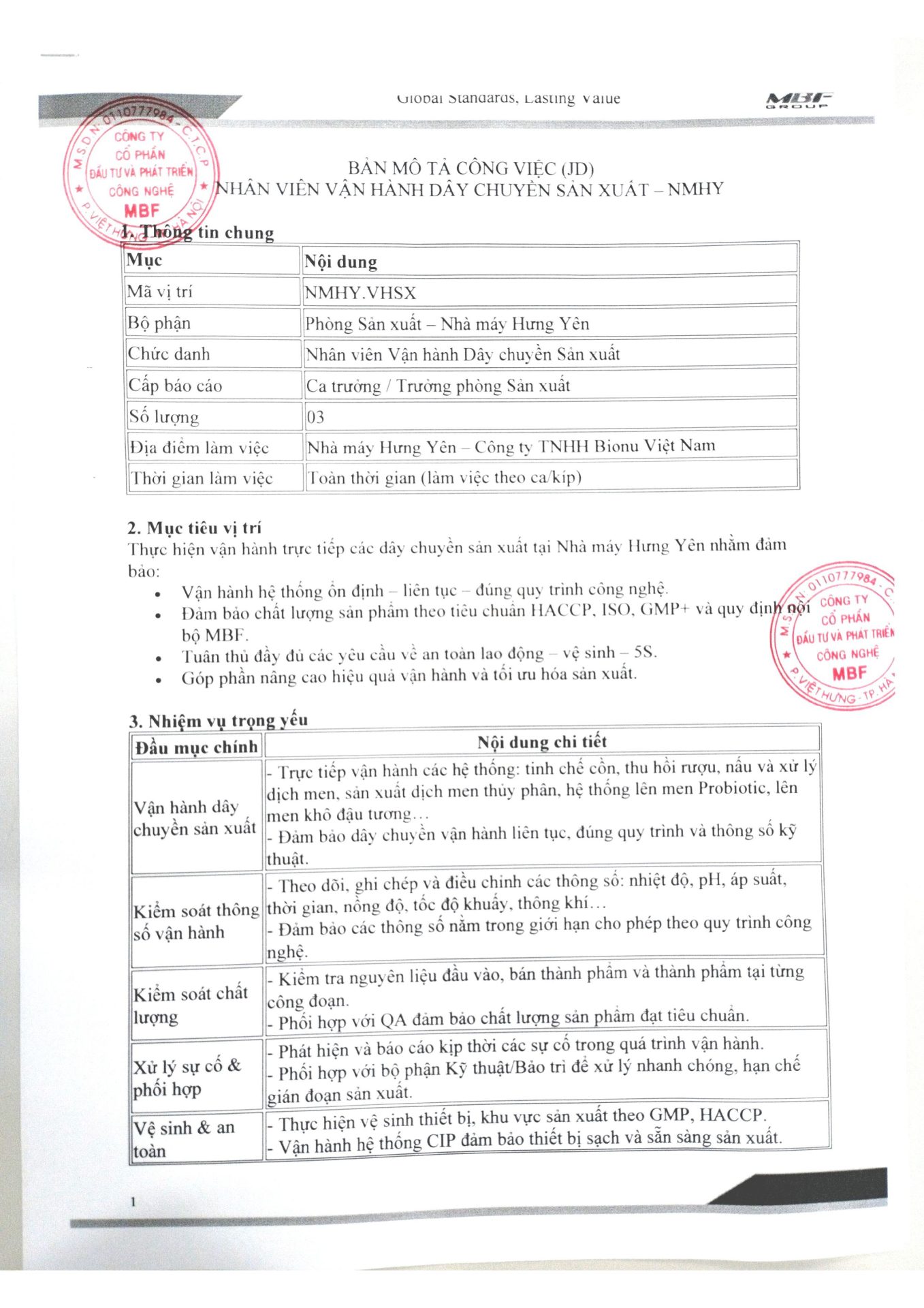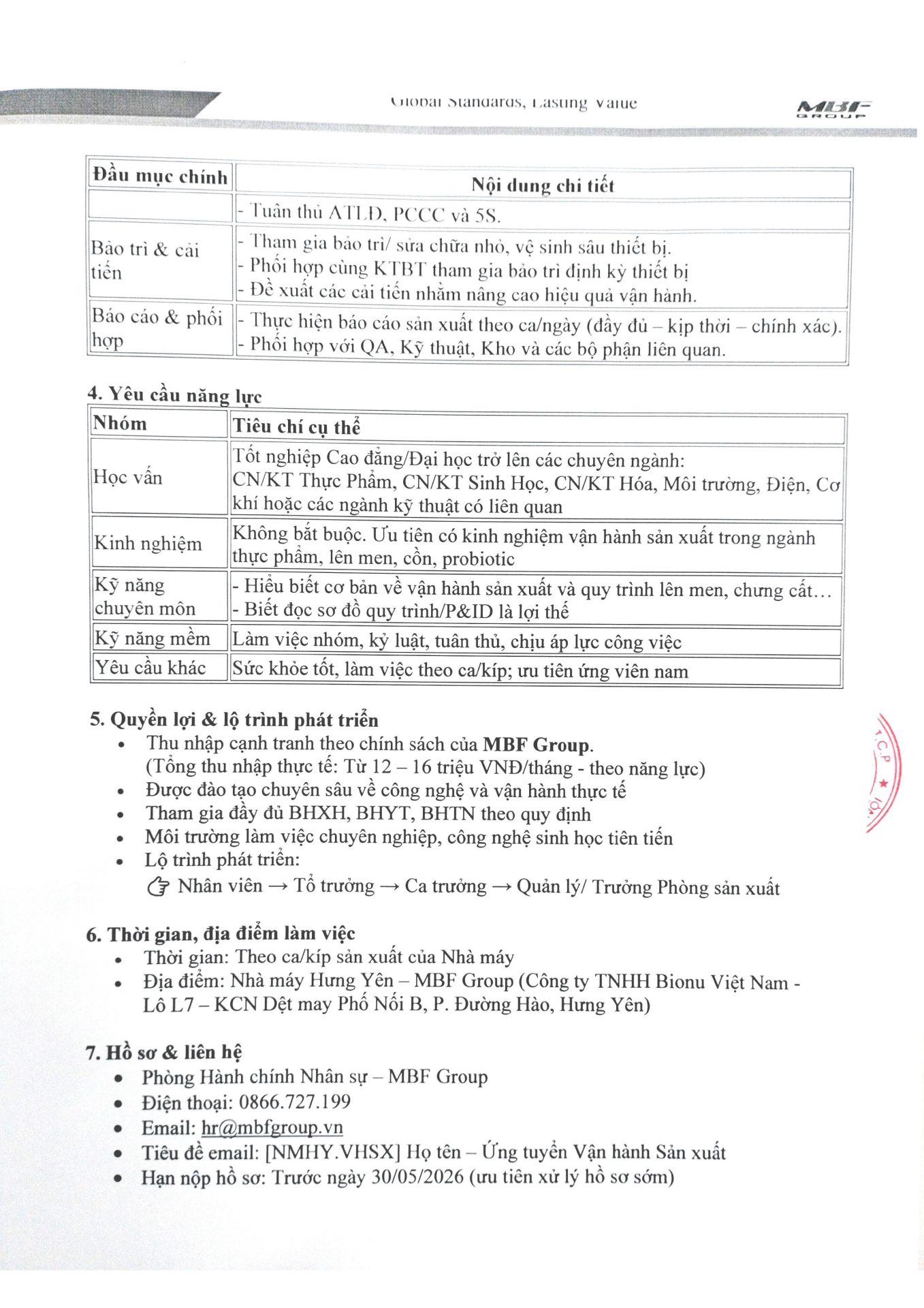 Yêu cầu: Tốt nghiệp Cao đẳng/Đại học trở lên các chuyên ngành: CN/KT Thực Phẩm, CN/KT Sinh Học, CN/KT Hóa, Môi trường, Điện, Cơ khí hoặc các ngành kỹ thuật có liên quan