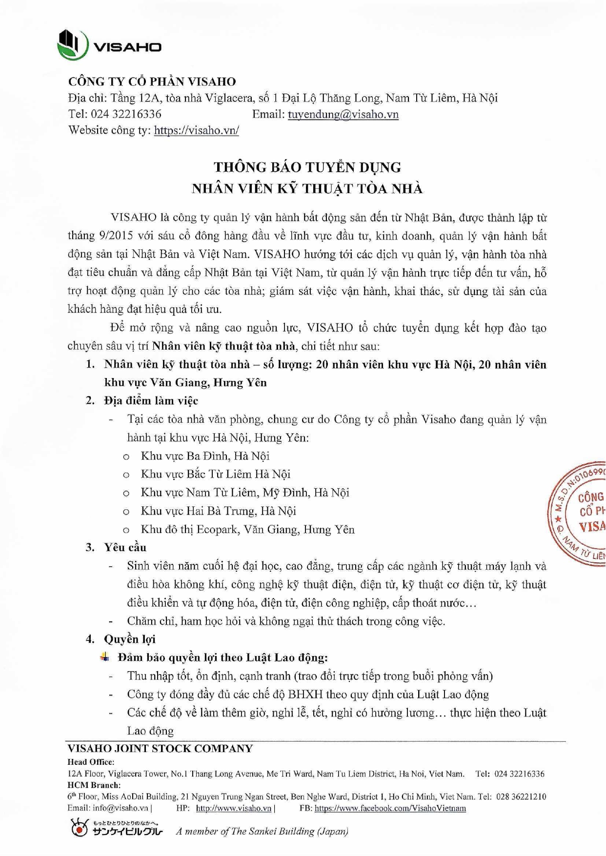 Thông báo, Thông tin việc làm Thông tin tuyển dụng của công ty cổ phần Visaho Ngày đăng: 21/05/2024 by btvcodien TD Visaho Tin cùng thể loại Thông báo tổ chức Lễ bế giảng và trao bằng tốt nghiệp, bậc đào tạo Đại học, Hệ đào tạo chính quy đợt 3 năm 2025 Thông báo v/v mở lớp đặc biệt Học kỳ 1 năm học 2025-2026 Điều kiện để trở thành nghiên cứu sinh ngành Kỹ thuật cơ khí của khoa Cơ – Điện,Học viện Nông nghiệp Việt Nam Hướng dẫn thao tác cơ bản trên cổng thông tin đào tạo Thông báo V/v thu tiền học phí học kì I, năm học 2025-2026 đối với SINH VIÊN