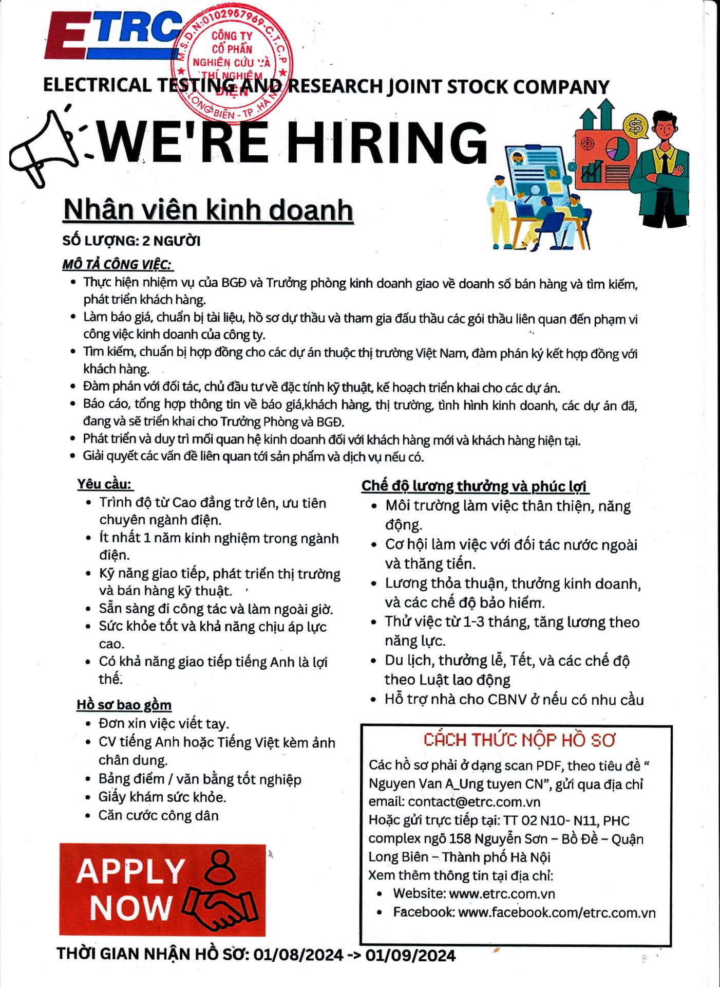 Thông báo, Thông tin việc làm Thông tin tuyển dụng của Công ty CP nghiên cứu và thí nghiệm điện Ngày đăng: 07/08/2024 by btvcodien Tin cùng thể loại Khảo sát tình hình việc làm của sinh viên tốt nghiệp năm 2024 Thông báo tổ chức Lễ bế giảng và trao bằng tốt nghiệp, bậc đào tạo Đại học, Hệ đào tạo chính quy đợt 3 năm 2025 Thông báo v/v mở lớp đặc biệt Học kỳ 1 năm học 2025-2026 Điều kiện để trở thành nghiên cứu sinh ngành Kỹ thuật cơ khí của khoa Cơ – Điện,Học viện Nông nghiệp Việt Nam Hướng dẫn thao tác cơ bản trên cổng thông tin đào tạo