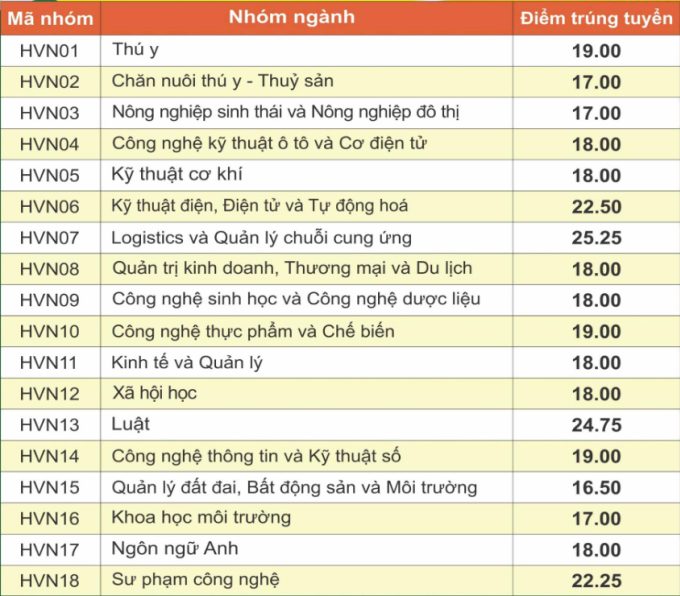Ngành Logistics và Quản lý chuỗi cung ứng tiếp tục đứng đầu Học viện Nông nghiệp Việt Nam về điểm chuẩn thi tốt nghiệp, tăng 0,75 so với năm ngoái.