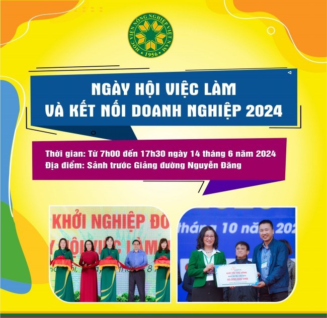 Ngày hội việc làm và kết nối doanh nghiệp năm 2024 là chương trình thường niên của Học viện Nông nghiệp Việt Nam do Trung tâm Quan hệ công chúng và Hỗ trợ sinh viên tham mưu, phối hợp với các đơn vị trong và ngoài Học viện tổ chức.