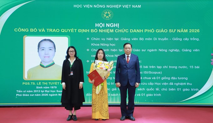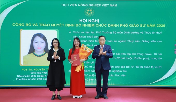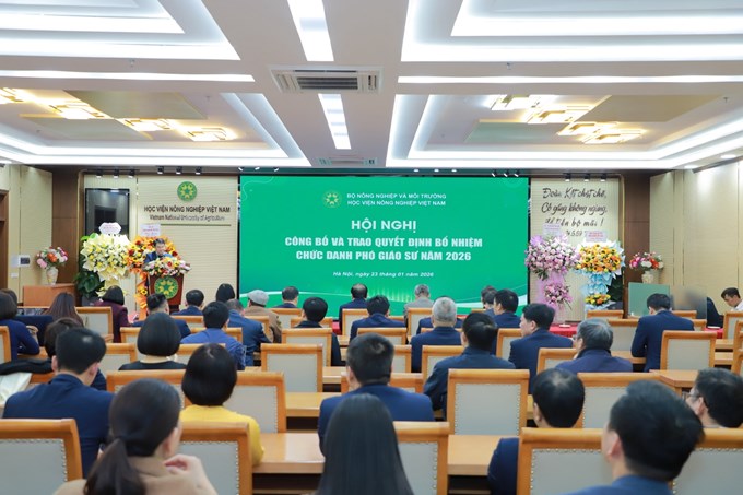 Ngày 23 tháng 01 năm 2026, Học viện Nông nghiệp Việt Nam đã long trọng tổ chức Hội nghị công bố và trao quyết định bổ nhiệm chức danh Phó Giáo sư cho 17 giảng viên, nhà khoa học của Học viện đã được Hội đồng Giáo sư Nhà nước công nhận đạt tiêu chuẩn chức danh Phó Giáo sư vào năm 2025.