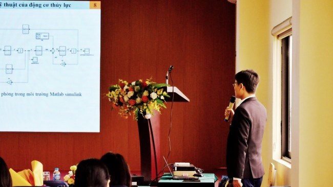 Cũng trong Hội thảo, TS. Nguyễn Trọng Minh trình bày lại kết quả nghiên cứu của luận án tiến sỹ: “Nâng cao độ tin cậy hệ thống thủy lực của máy xây dựng bằng phương pháp chẩn đoán kỹ thuật”. Mục đích chính của đề tài là nâng cao độ bền và độ tin cậy của máy xây dựng bằng cách phát hiện và ngăn ngừa kịp thời các hư hỏng của hệ thống thủy lực dựa trên thông tin chẩn đoán vận hành về tình trạng kỹ thuật của các máy xây dựng. Với kết quả đã đạt được, đề tài mang đến nhiều tính mới trong thực tế. Đó là: i) Mô hình toán học về sự thay đổi tình trạng kỹ thuật của xi lanh thủy lực trên máy xây dựng; ii) Mô hình toán học về sự thay đổi tình trạng kỹ thuật của động cơ thủy lực trên máy xây dựng; iii) Thuật toán chẩn đoán từ xa hệ thống thủy lực trên máy xây dựng; iv) Mô hình toán học nhằm tăng độ tin cậy của máy xây dựng dựa trên thông tin thu được bằng hệ thống chẩn đoán từ xa. Các ý kiến ở Hội thảo đều rất tán đồng với kết quả mà tác giả đã đạt được khi nghiên cứu ở Liên bang Nga. Tuy nhiên, mọi người đều mong rằng, TS. Nguyễn Trọng Minh sẽ sớm ứng dụng các kết quả đó ở điều kiện thực tế của Việt Nam.