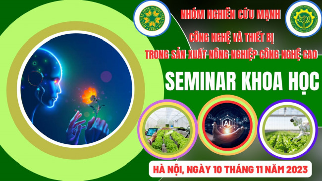 Ngày 10/11/2023, nhóm nghiên cứu mạnh Công nghệ và Thiết bị trong sản xuất nông nghiệp công nghệ cao – Khoa Cơ-Điện đã tổ chức buổi seminar khoa học với chủ đề “Ứng dụng trí tuệ nhân tạo và các công nghệ hiện đại trong sản xuất nông nghiệp công nghệ cao”. Tham dự buổi seminar có sự có mặt đầy đủ của các thầy/cô, nhà khoa học của nhóm nghiên cứu mạnh, Khoa Cơ-Điện và các sinh viên, học viên yêu thích nghiên cứu khoa học. Mục tiêu của buổi seminar giúp các thầy/cô giáo, nhà khoa học trao đổi học thuật, đề xuất các hướng nghiên cứu có nhiều triển vọng trong việc hiện đại hóa, thông minh hóa các quá trình sản xuất nông nghiệp công nghệ cao.