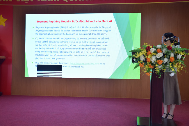 ThS. Nguyễn Thị Duyên trình bày ứng dụng Segment Anything Model (SAM) trong nhận diện bệnh hại trên cây trồng