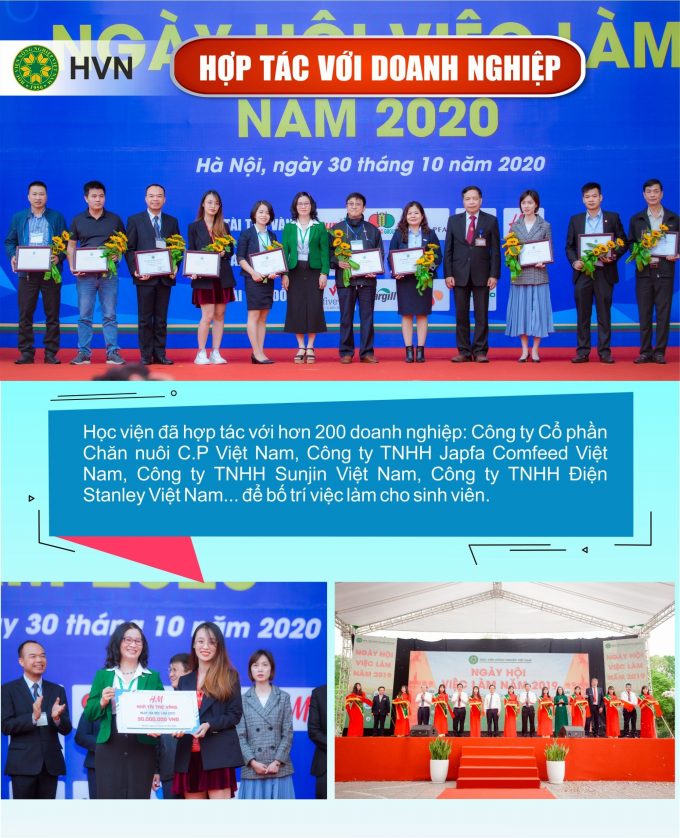 Học viện đã hợp tác với hơn 200 doanh nghiệp (Công ty Cổ phần Chăn nuôi C.P Việt Nam, Công ty TNHH Japfa Comfeed Việt Nam, Công ty TNHH Sunjin Việt Nam, Công ty TNHH Điện Stanley Việt Nam…) để bố trí việc làm cho sinh viên.
