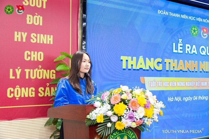 Phát biểu phát động Tháng Thanh niên năm 2025, ThS. Đặng Nam Phương – Phó Bí thư Đoàn Thanh niên Học viện cho biết, Tháng Thanh niên là dịp để mỗi đoàn viên, thanh niên Học viện phát huy tinh thần sáng tạo, xung kích, tình nguyện, cống hiến vì đời sống cộng đồng, thể hiện trách nhiệm với đất nước. Với chủ đề “Tuổi trẻ Học viện Nông nghiệp Việt Nam tự hào, vững tin theo Đảng”, mỗi bạn trẻ không chỉ ôn lại truyền thống hào hùng mà tiếp thêm động lực để góp phần dựng xây đất nước hùng cường, sẵn sàng tiến vào kỷ nguyên mới, kỷ nguyên vươn mình của dân tộc.